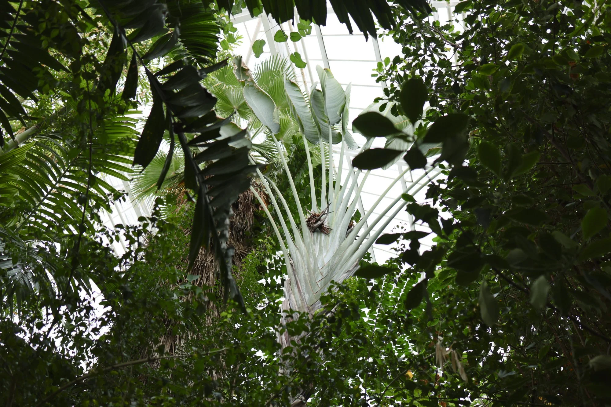 Palmenhaus mit imposanten Palmen und Bananenstauden